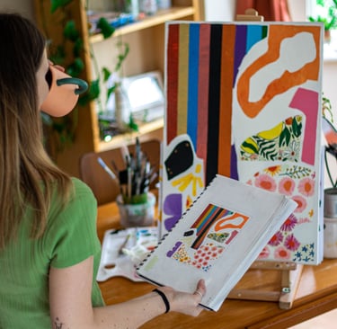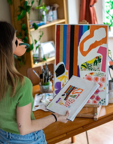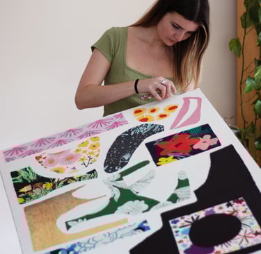 HELLO! I'm Lottie, a UK-based freelance artist who's work is the product of free-flowing fun and experimentation, using paper collage and paint. I AM obsessed with colour, pattern and abstract shapes!